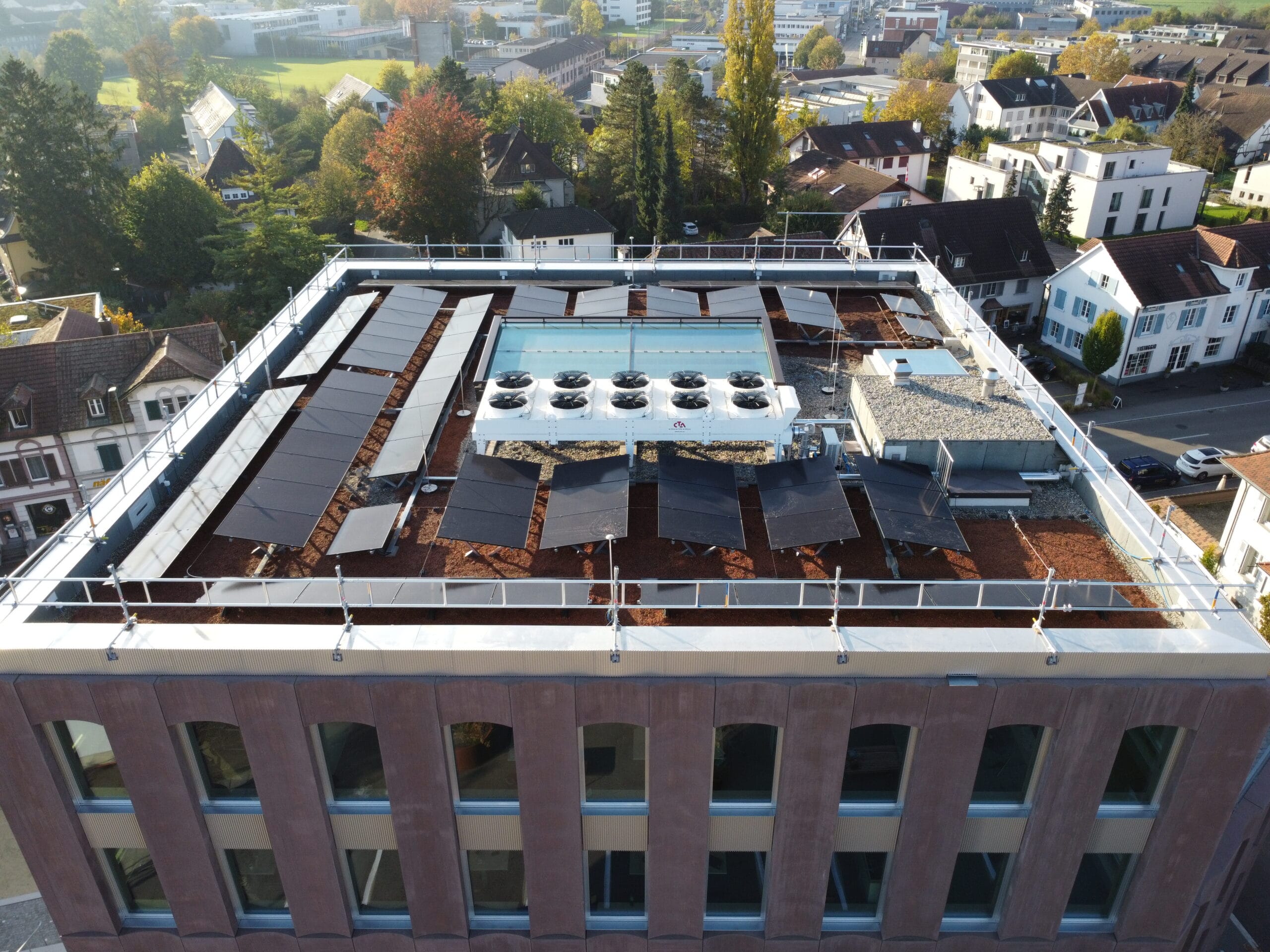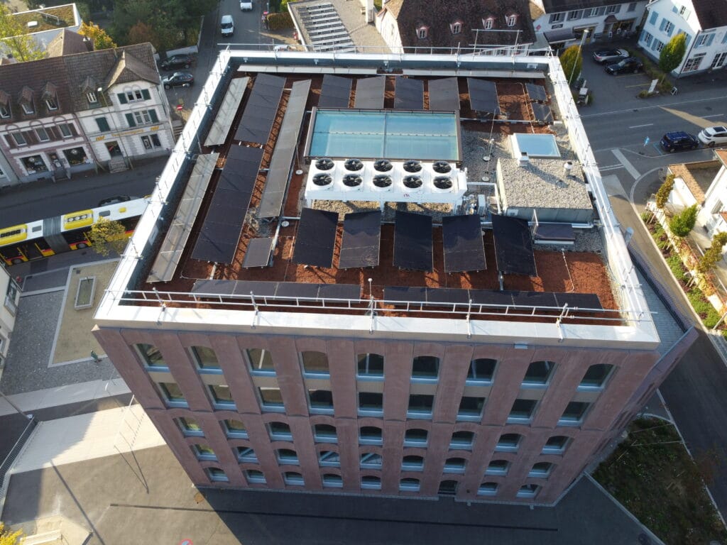 Wir freuen uns darüber, gemeinsam mit der Planeco GmbH eine anspruchsvolle PV-Anlage auf dem Dach des Gemeindehauses Oberwil realisiert zu haben. Trotz zahlreicher Herausforderungen – darunter Gründach, bestehende Absturzsicherung, diverse Dachaufbauten und Verschattungsquellen – konnten wir eine leistungsstarke Anlage mit rund 35 kWp installieren.