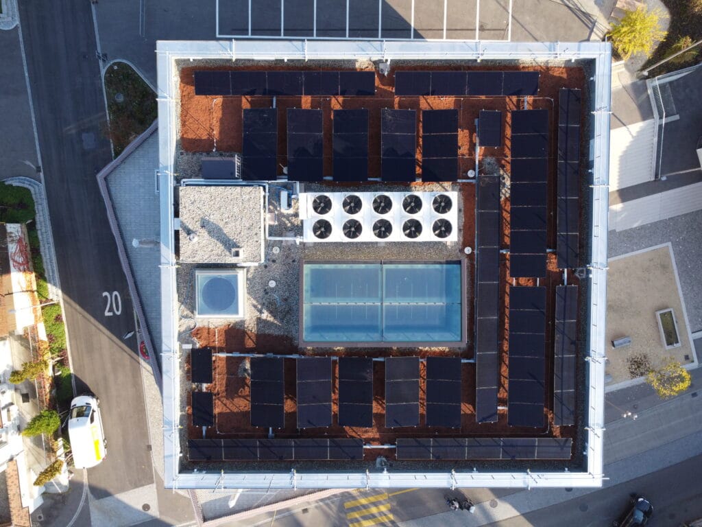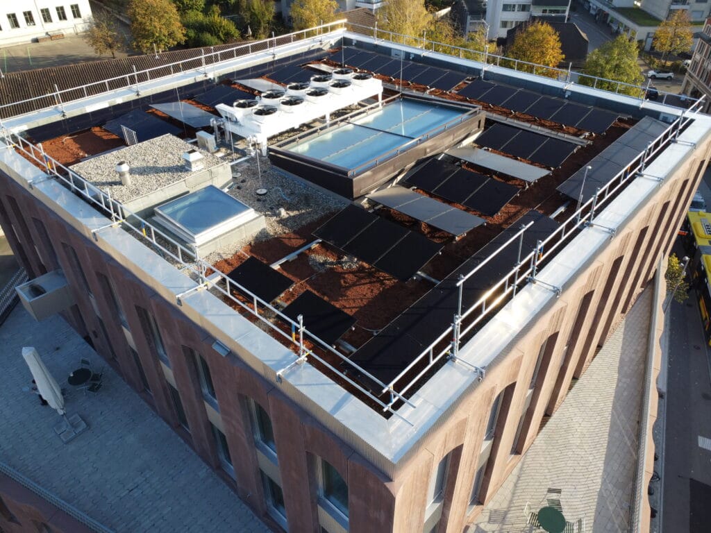 Dank durchdachter Planung mit harmonischer Kombination von PV und Gründach, sicheren Wartungsgängen sowie dem Einsatz von Modulen der Hagelwiderstandsklasse 4 ist die Anlage bestens für die Zukunft vorbereitet. Rund 80 % des erzeugten Stroms werden direkt im Gebäude genutzt – ein wichtiger Beitrag zur Wirtschaftlichkeit der Anlage und zur Nachhaltigkeit der Gemeinde. Über den Energiemanager sind die Ertragsdaten zudem jederzeit in Echtzeit einsehbar.